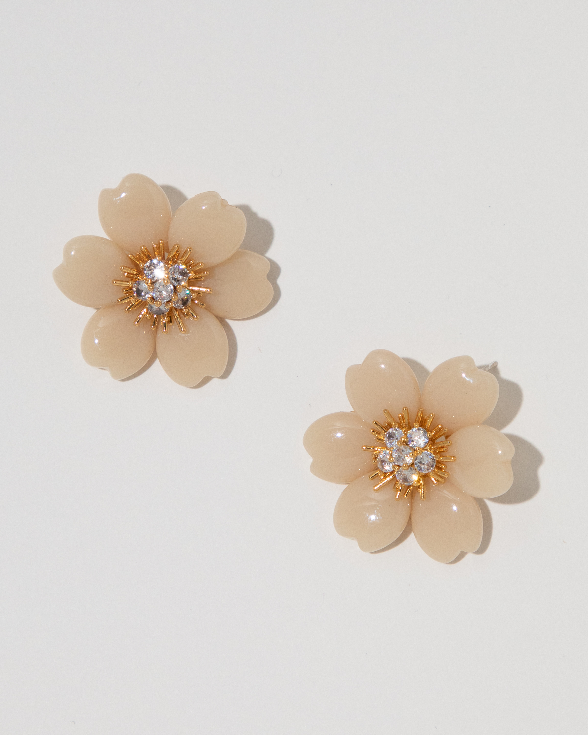These exquisite Bold Flower Stud Earrings feature central crystals surrounded by luminous petals in a gorgeous sculptural design. Lightweight for easy wear, they are held securely in place with a stud closure. Elevate any outfit with these stunning floral statement earrings.