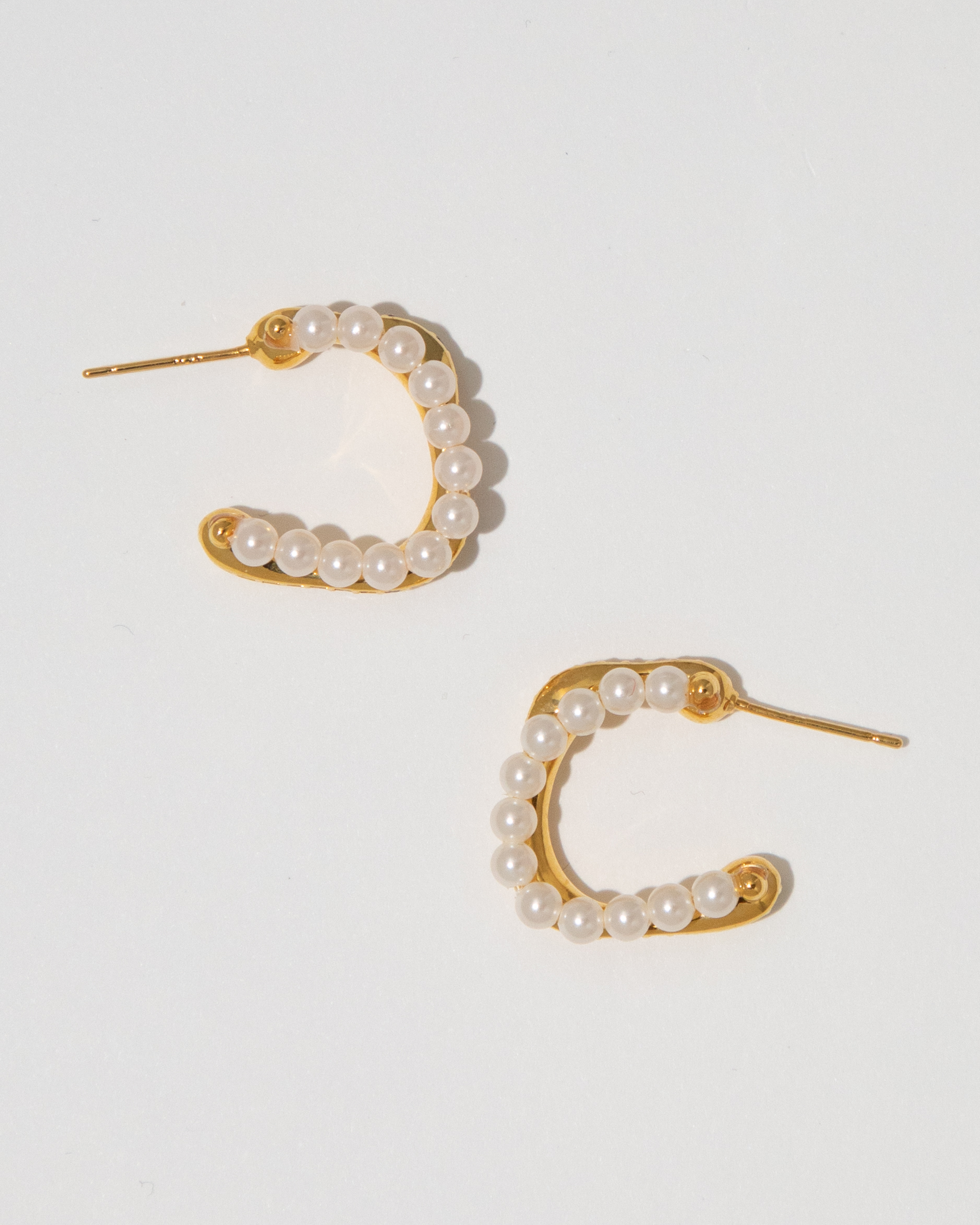 Introducing our Crystal Pearl Hoops, featuring organic shapes and a sculptural design for a modern twist on classic hoops. Adorned with lustrous pearls and sparkling crystals, these unique hoops are sure to elevate any outfit.