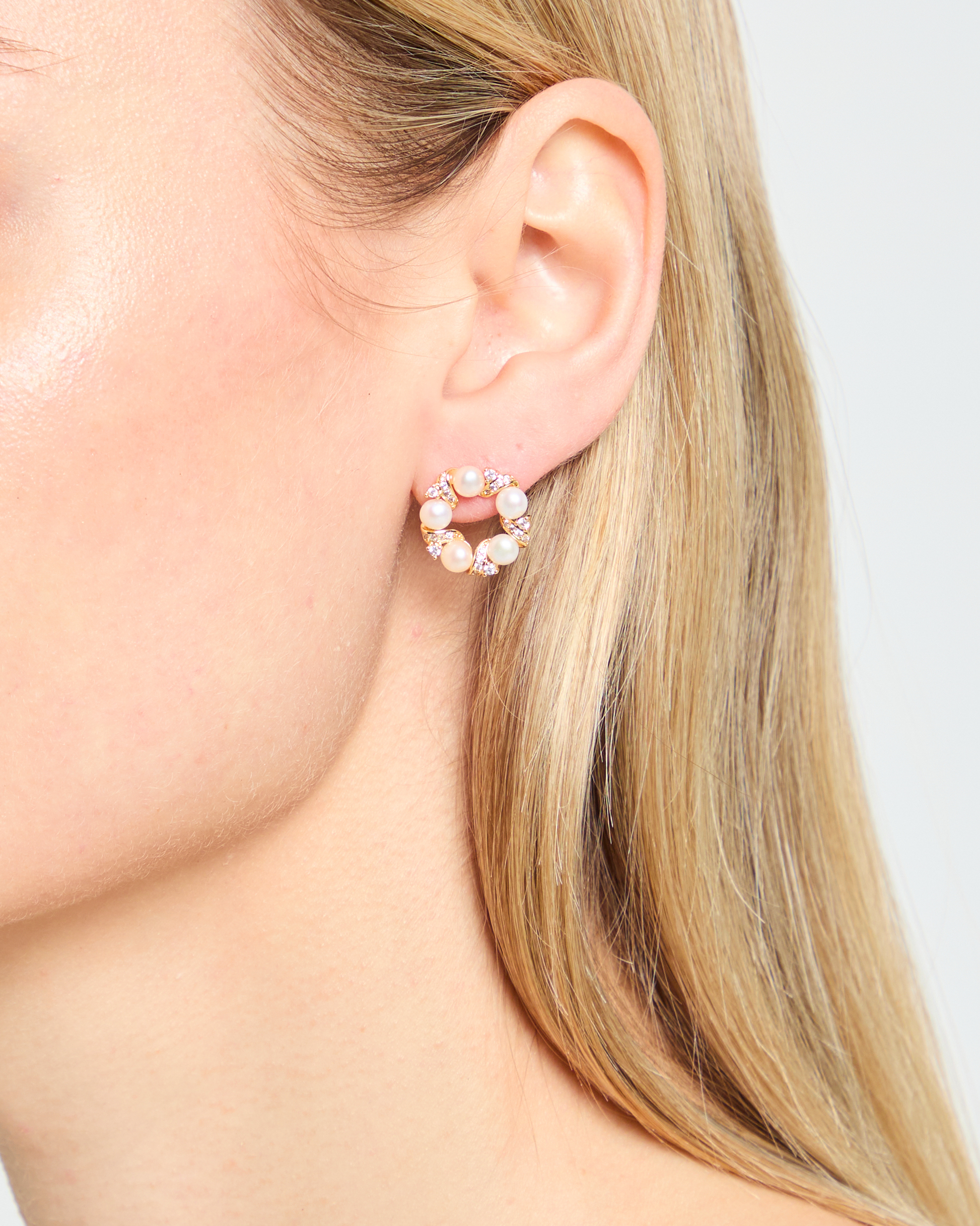 Expertly crafted with gold, crystals, and pearl, these Crystal Pearl Round Stud Earrings have it all. The easy stud closure makes them perfect for daily wear while the elegant design elevates any look instantly.