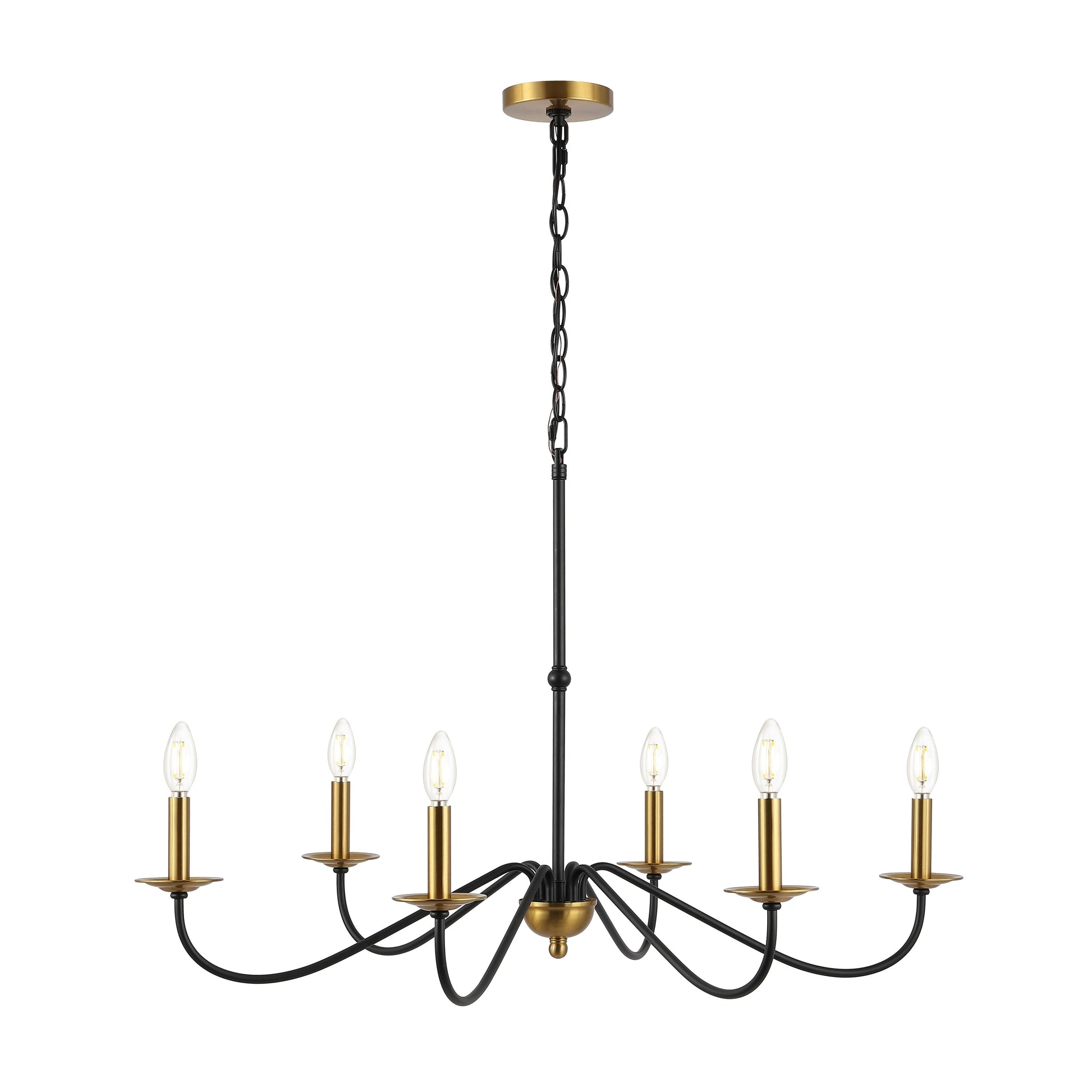 Based on historic wrought iron chandeliers, our rustic 6-light design features a quality finish. Perfectly sized for a farmhouse dining room, tall entry, or great room with high ceilings, our chandelier is just under 35' wide and features tall candles with LED candle bulbs. Use this versatile chandelier in a modern farmhouse, French country or Tuscan style home, or to add character to a rustic, industrial space.
