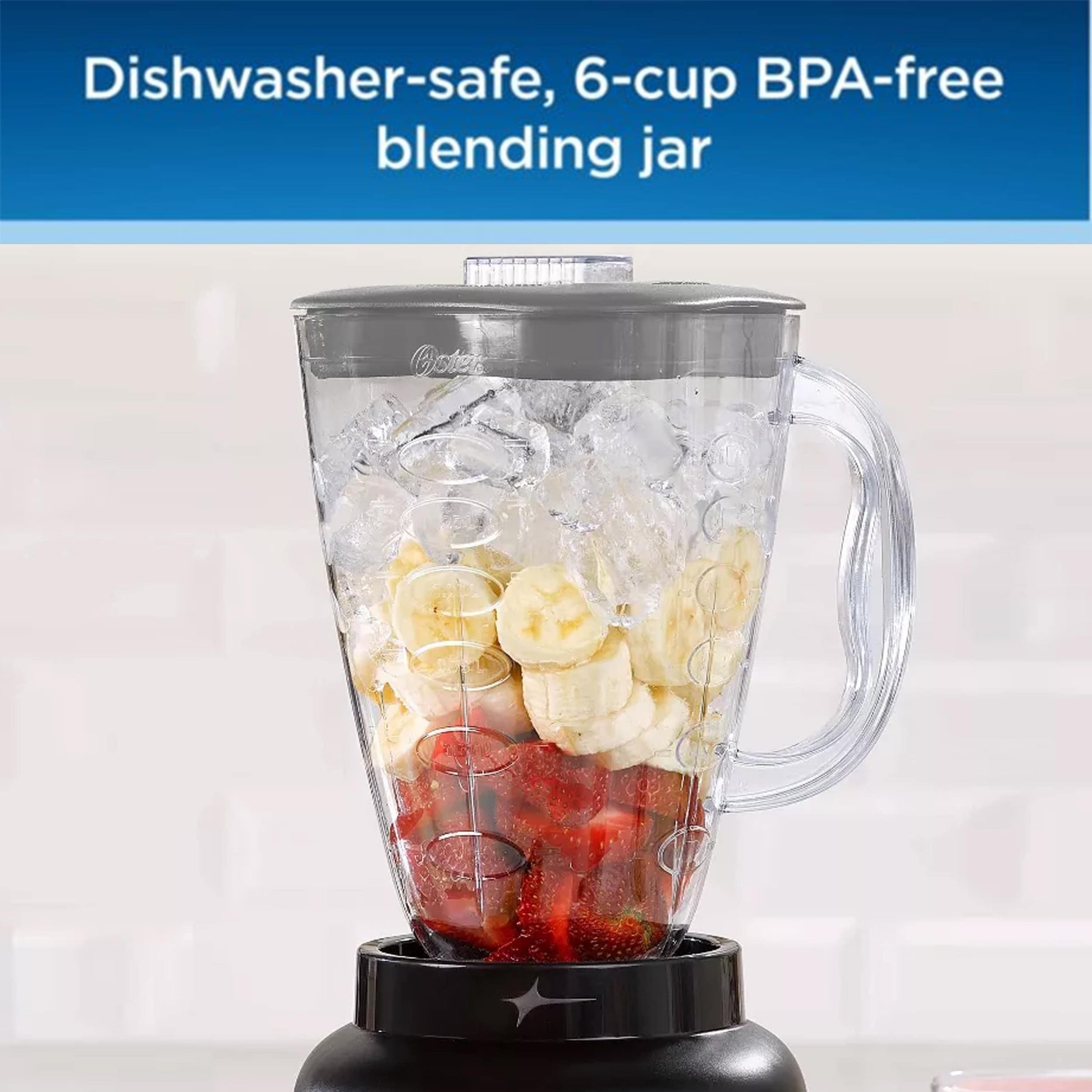 Make your favorite smoothies, milkshakes, salsas, and more right at home with this 6 Cup 5 Speed Plastic Jar Easy To Use Blender. The BPA Free plastic jar holds up to 6 cups of items and with the 700 watt ice crushing power all metal drive, you'll be able to blend anything you desire. The base has 5 speeds to choose from with easily labelled buttons so you can have the perfect consistency for any recipe. When you're finished, the plastic jar is dishwasher safe making for effortless cleanup. Any recipes or sweet treats you have in mind will be yours with this versatile countertop blender.