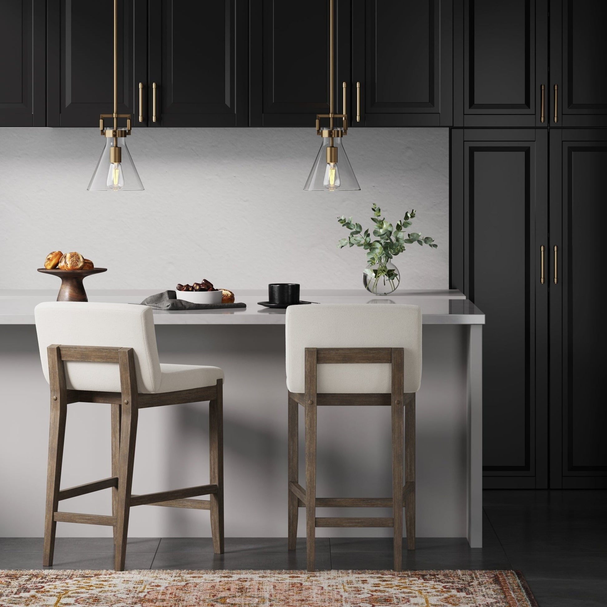 Gracie Modern Bar Stool, Boucle Upholstered...