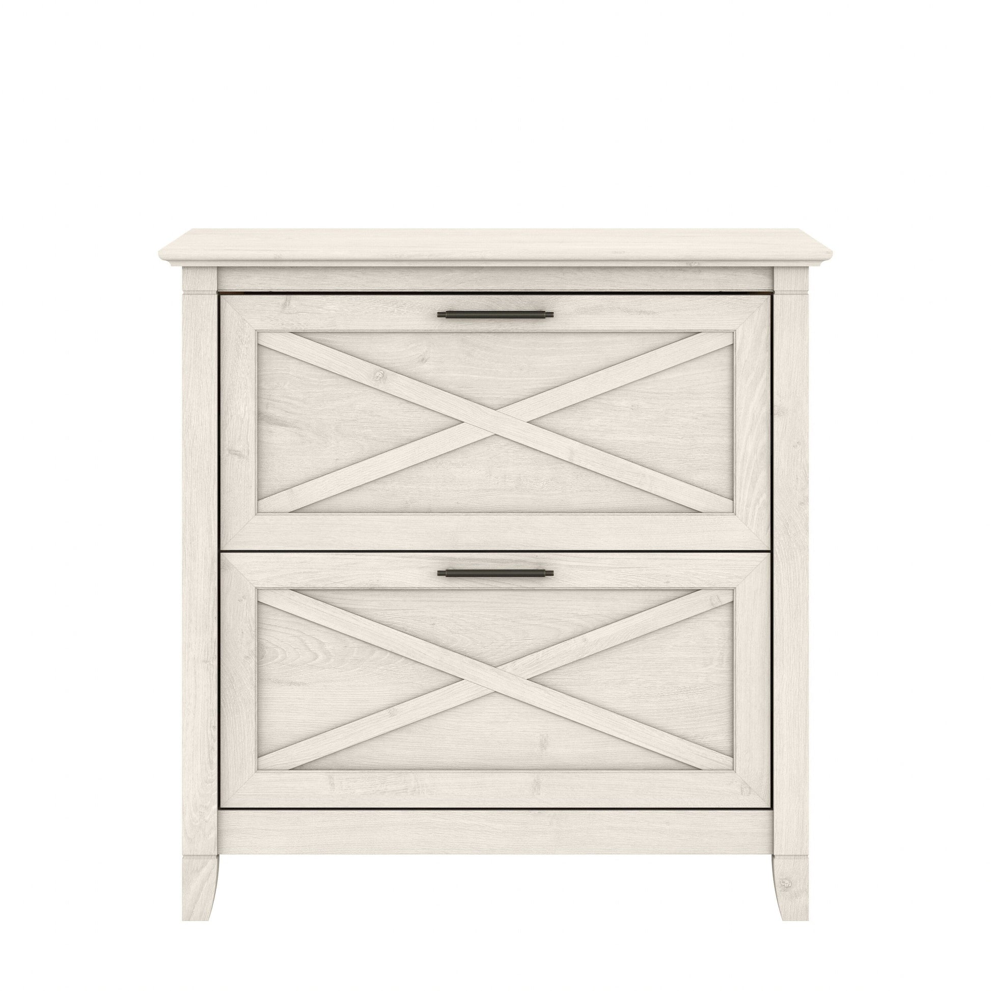 A natural fit for homes that embrace coastal and farmhouse decor, the Bush Furniture Key West 2 Drawer Lateral File Cabinet is perfect for organizing paperwork in virtually any room. Two file drawers open on smooth full-extension ball bearing slides for an easy reach to legal and letter size documents. A unique X pattern accent on the drawer panels creates a relaxed style supported by a sturdy and attractive post leg design. This 30W x 20D x 30H lateral filing cabinet matches the height of any Key West Desk (sold separately) to create an extended work surface when placed side by side. Choose from a variety of casual finish options to find the perfect look for your space. The Key West Collection offers a wide variety of farmhouse furniture that makes building a complete home office or living room ensemble a breeze. This 2 drawer filing cabinet is tested to meet ANSI/SOHO quality standards for safety and performance and is backed by the Bush Furniture 1 Year Manufacturer's Warranty. See the full collection for coordinating items available.