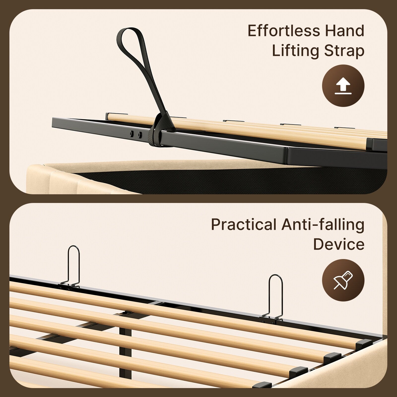 Lift Up Storage Bed Frame, Upholstered Platform Bed...