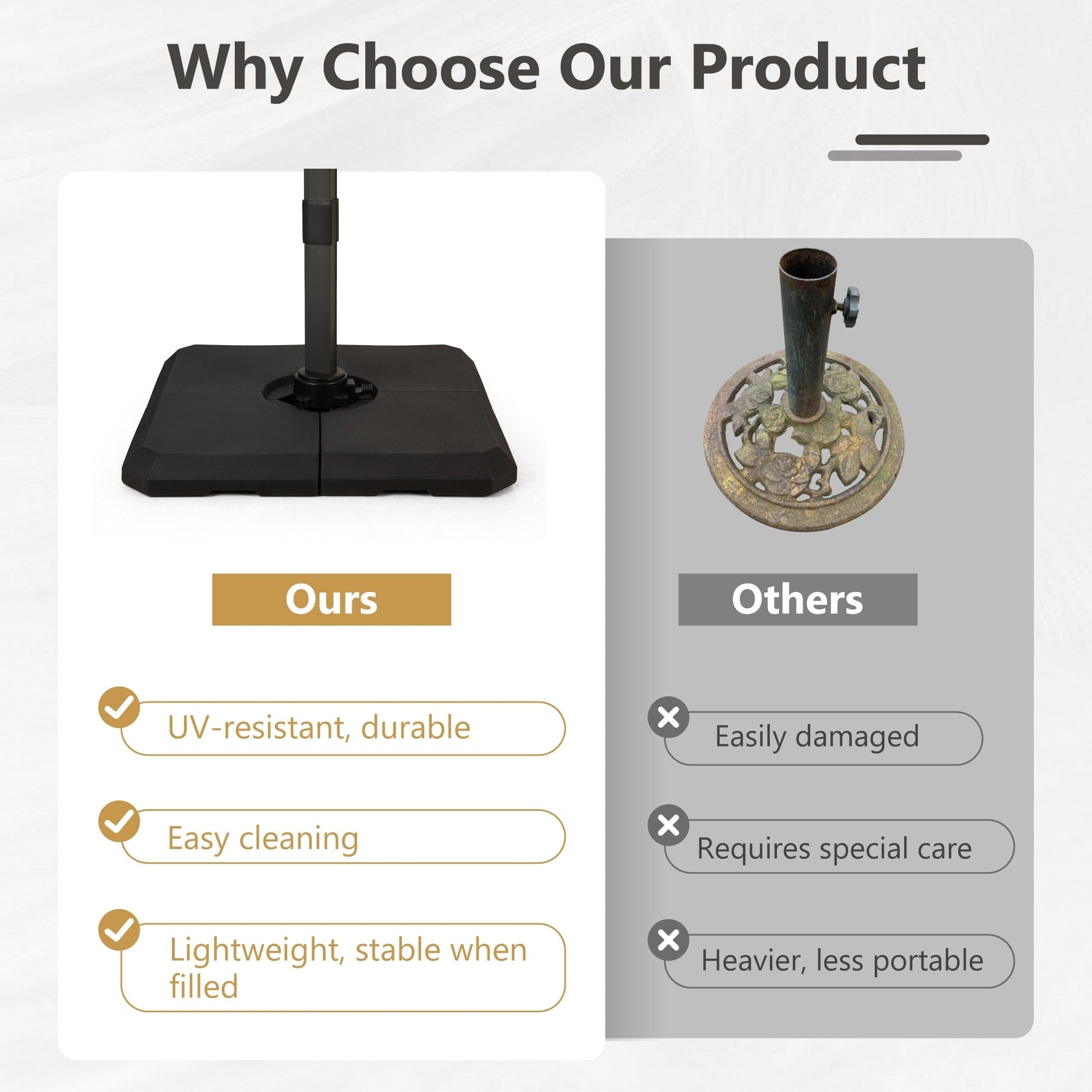 • Please Note all umbrellas include a cross base, and you can choose whether to purchase it with a weighted base or not.