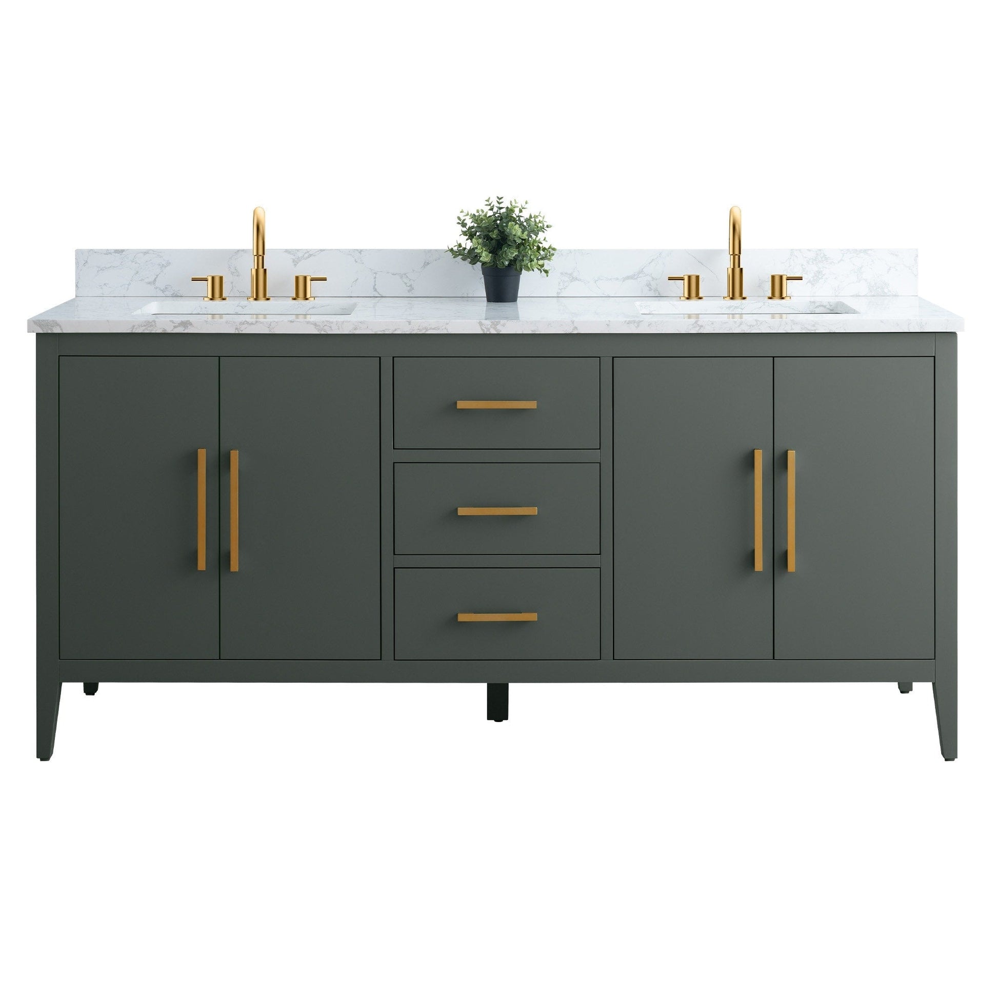 Vanity Art 72 Double Sink Bathroom Vanity Cabinet with Engineered Marble Top
