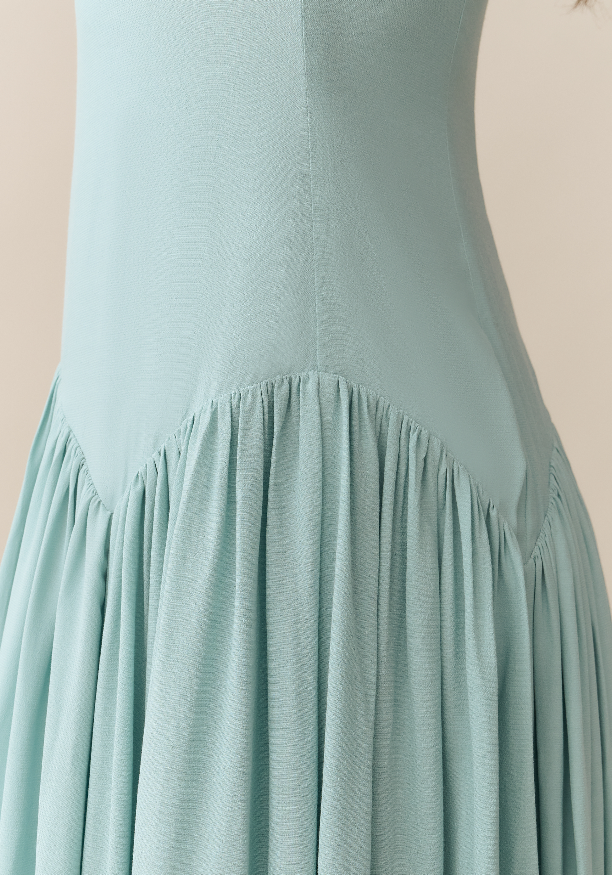 The Odessa Dress presents a sleek and sophisticated profile with its drop waist silhouette, finished with a light and airy skirt. Featuring an elegant high neckline, this expertly crafted dress offers a refined and timeless look suitable for formal occasions and stylish events.