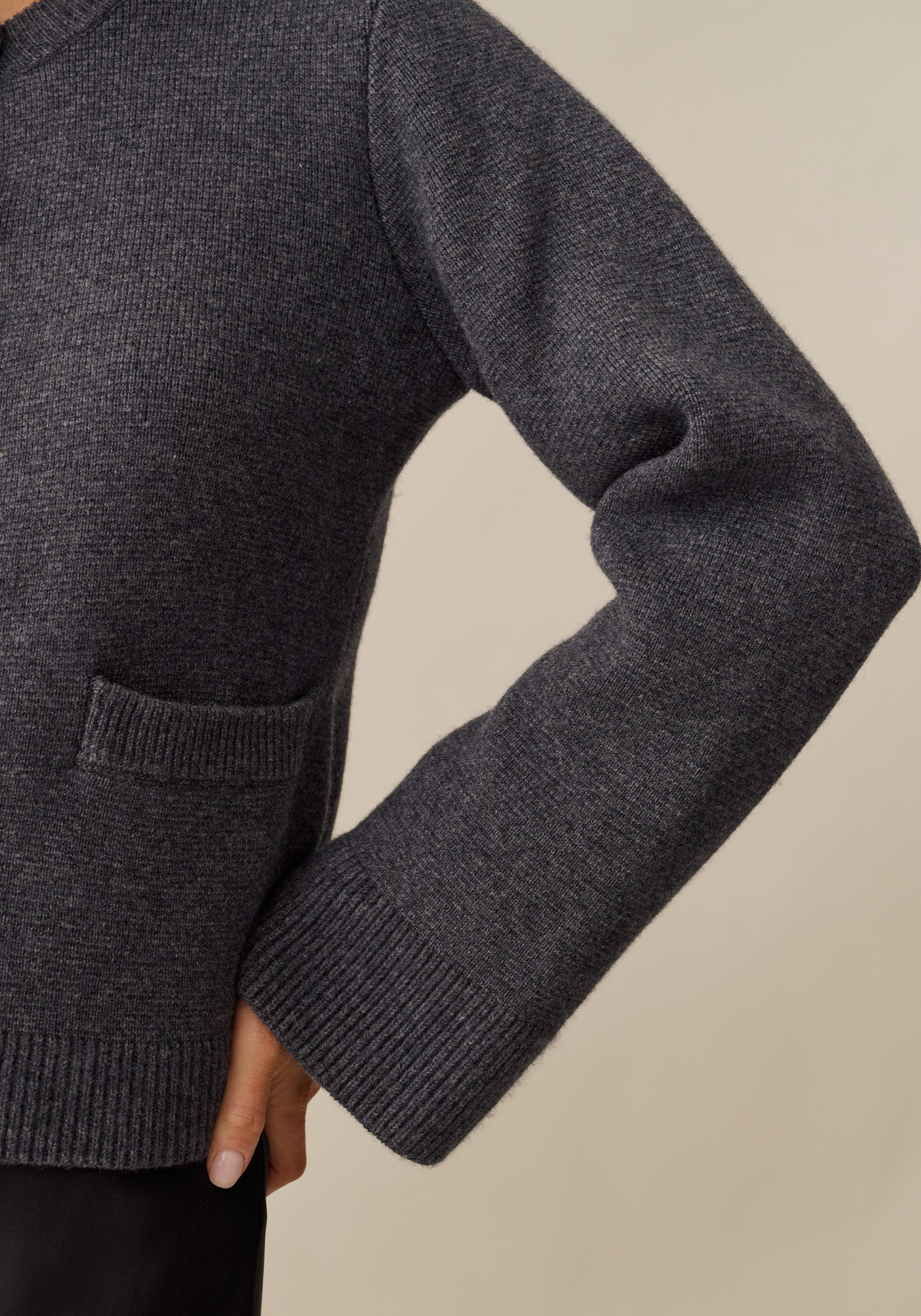 The Averie Cardigan boasts wooden buttons and a wool cashmere blend for a luxurious feel. Its super soft material combined with long bell sleeves and a flattering silhouette make it a must-have for both comfort and style. Upgrade your wardrobe with this elegant piece.