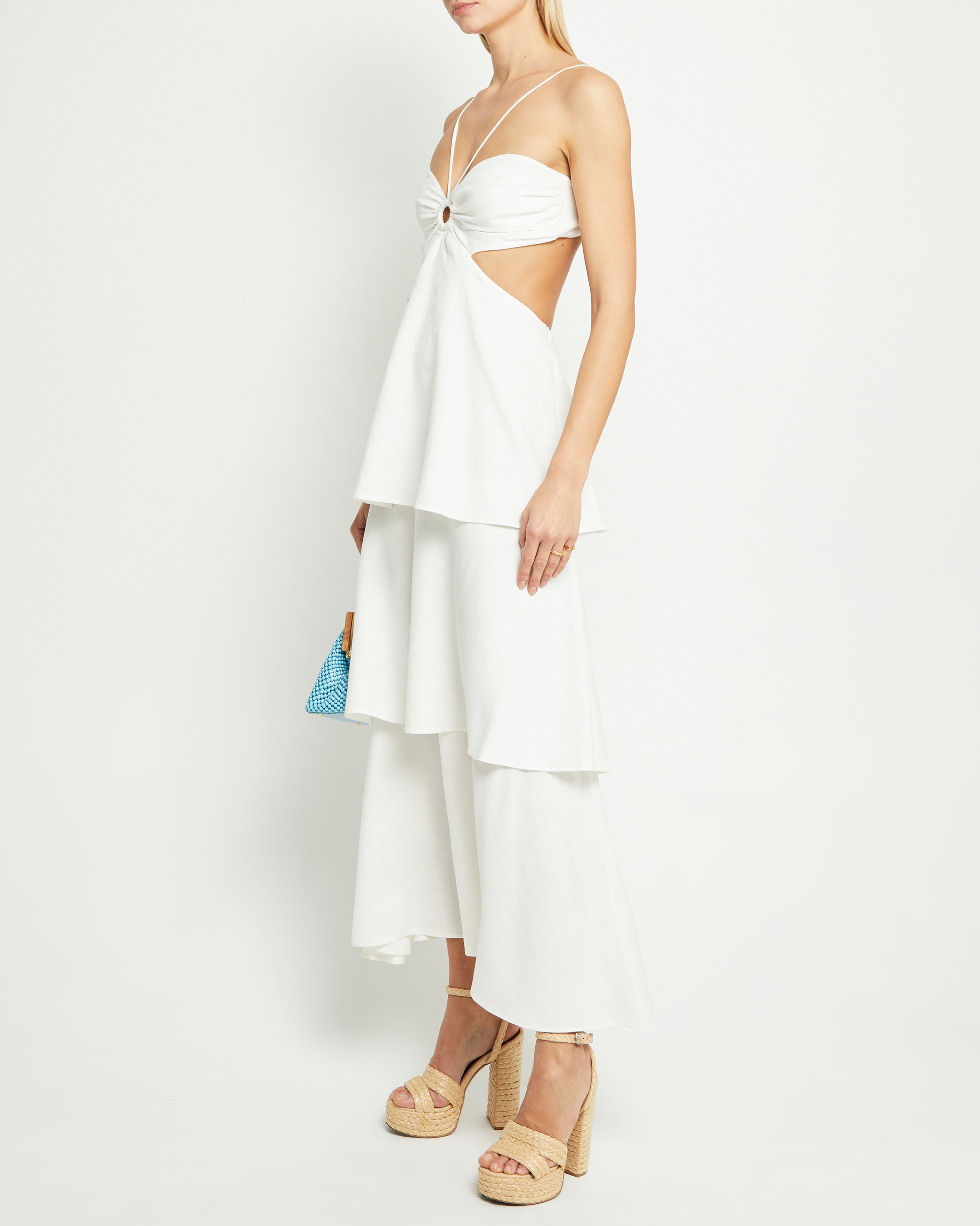 The Sandi Dress is a stunning addition to your wardrobe. Crafted from a linen blend, this dress features adjustable straps and tiered ruffles for a flattering fit and silhouette. The cut out detail and back buttons add a touch of fun.