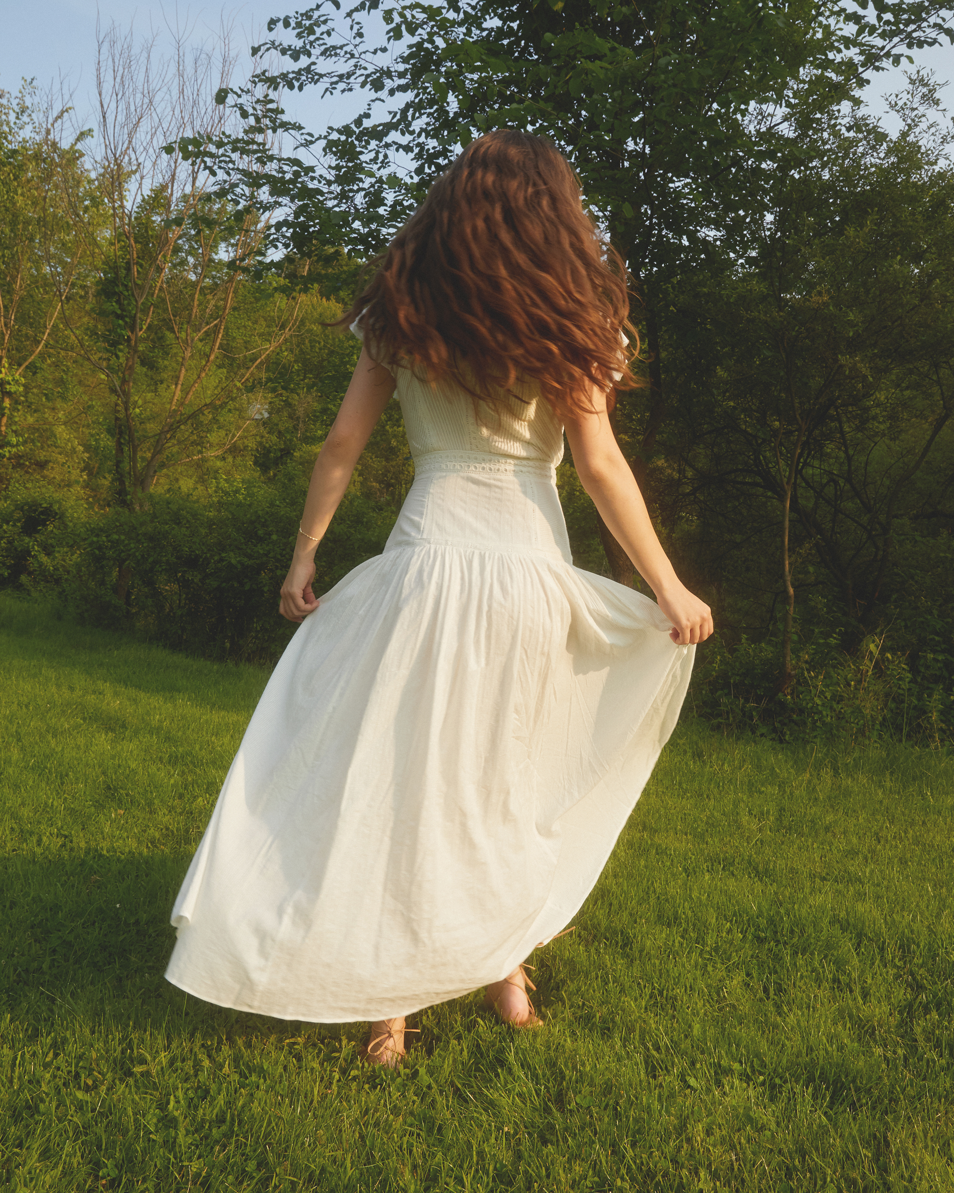 The Nella Dress expertly blends refined details with feminine charm. It showcases a sleek V-neckline and functional front buttons that add subtle sophistication. The fluttery ruffle sleeves bring a light, airy feel, perfectly complementing the flowy skirt that moves gracefully with every step.