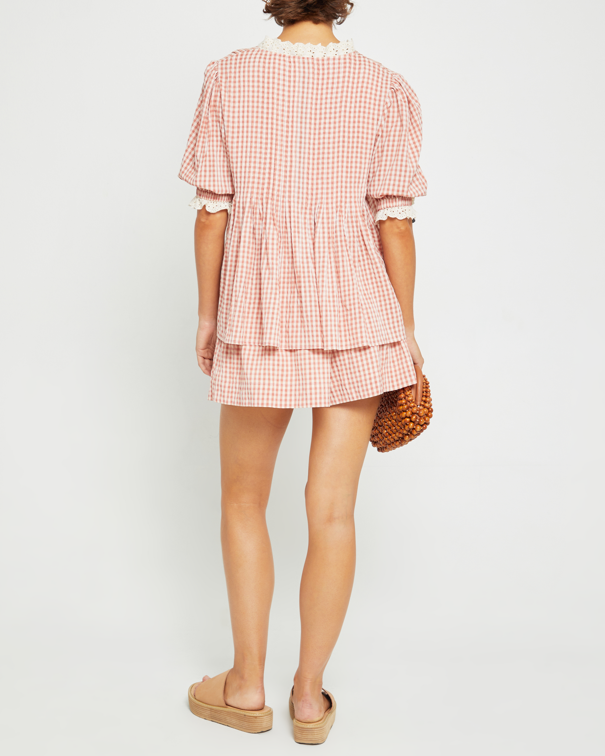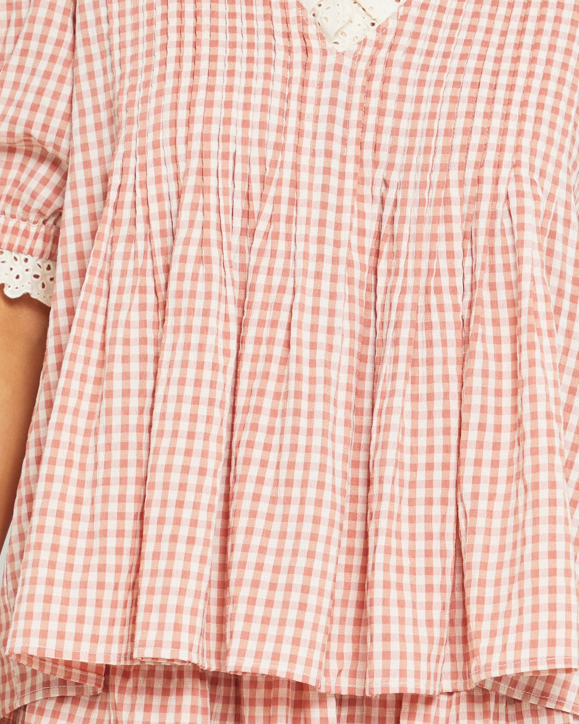 The Bronwyn Set features an adorable gingham print and charming lace trim details. With a breezy and relaxed fit, this easy set provides both style and comfort.