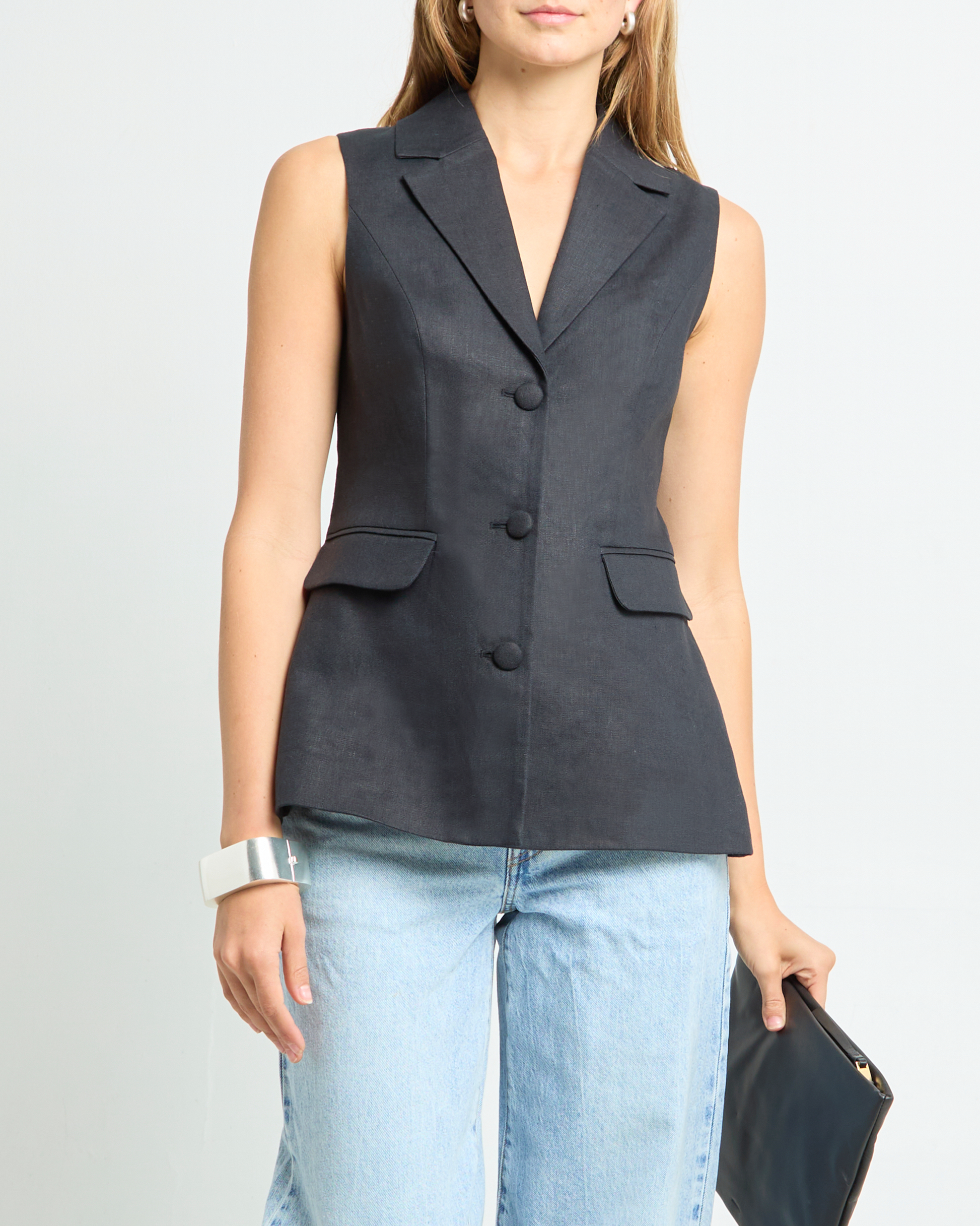 The Nila Top is a versatile addition to any wardrobe. With its easy vest design, relaxed and oversized fit, and effortlessly cool collared style, this top goes perfectly from day to night.