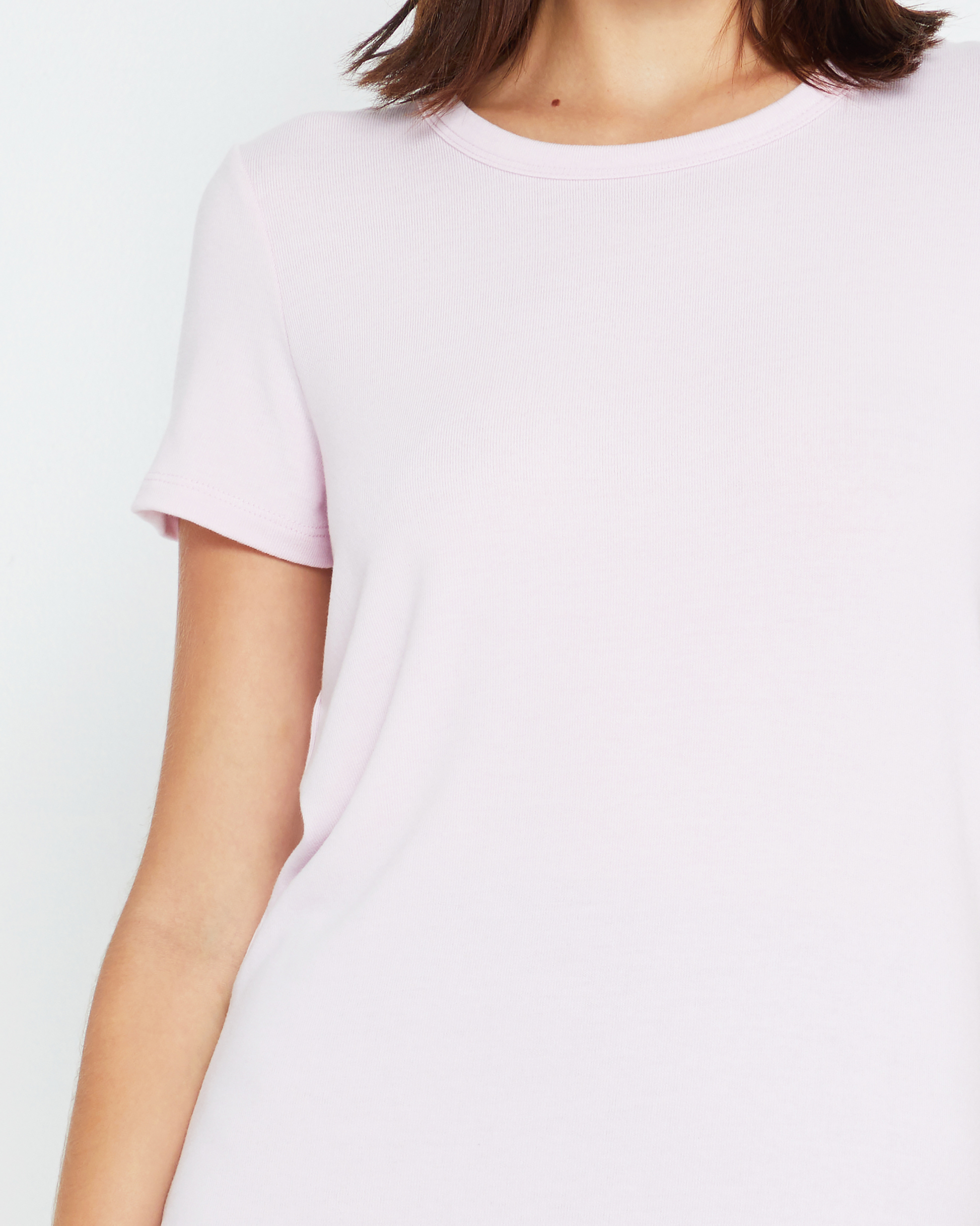 Oh so soft, this basic tee is about to be your new go-to. Done in a classic ribbed knit from our ultra soft and stretchy material.