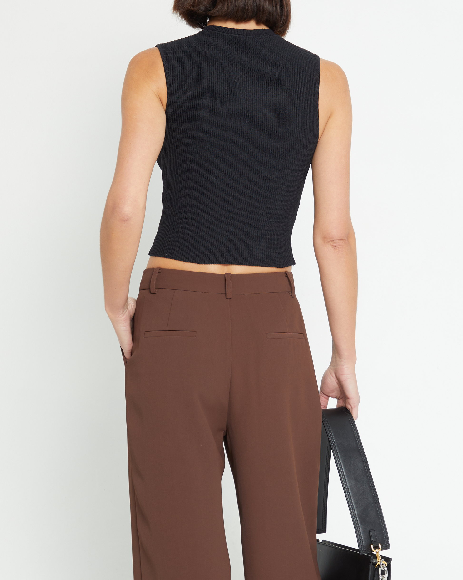This stylish muscle tank is a wardrobe essential. Crafted from ribbed knit material with a high neck and snug fit, it offers a flattering silhouette to showcase your best features. The sculpting fabric provides a classic and comfortable fit every time.