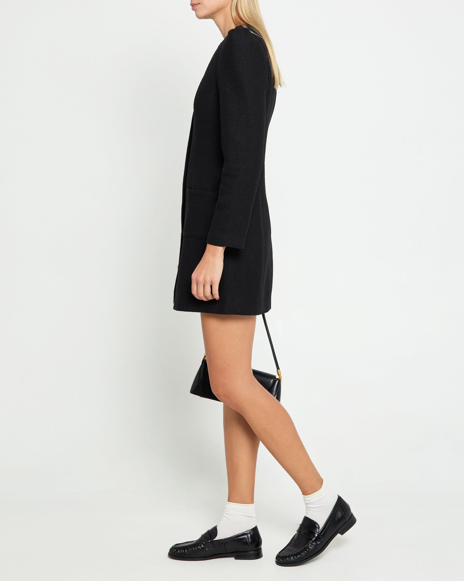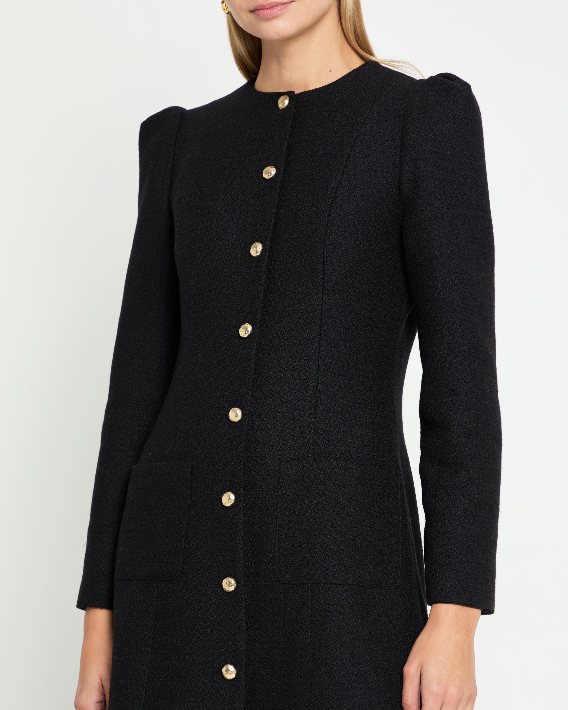 The Miranda Dress is a chic and versatile addition to your wardrobe. Its button-up design and long sleeves give it a sophisticated touch, while its thick and structured fabric allows you to dress it up or down for any occasion.