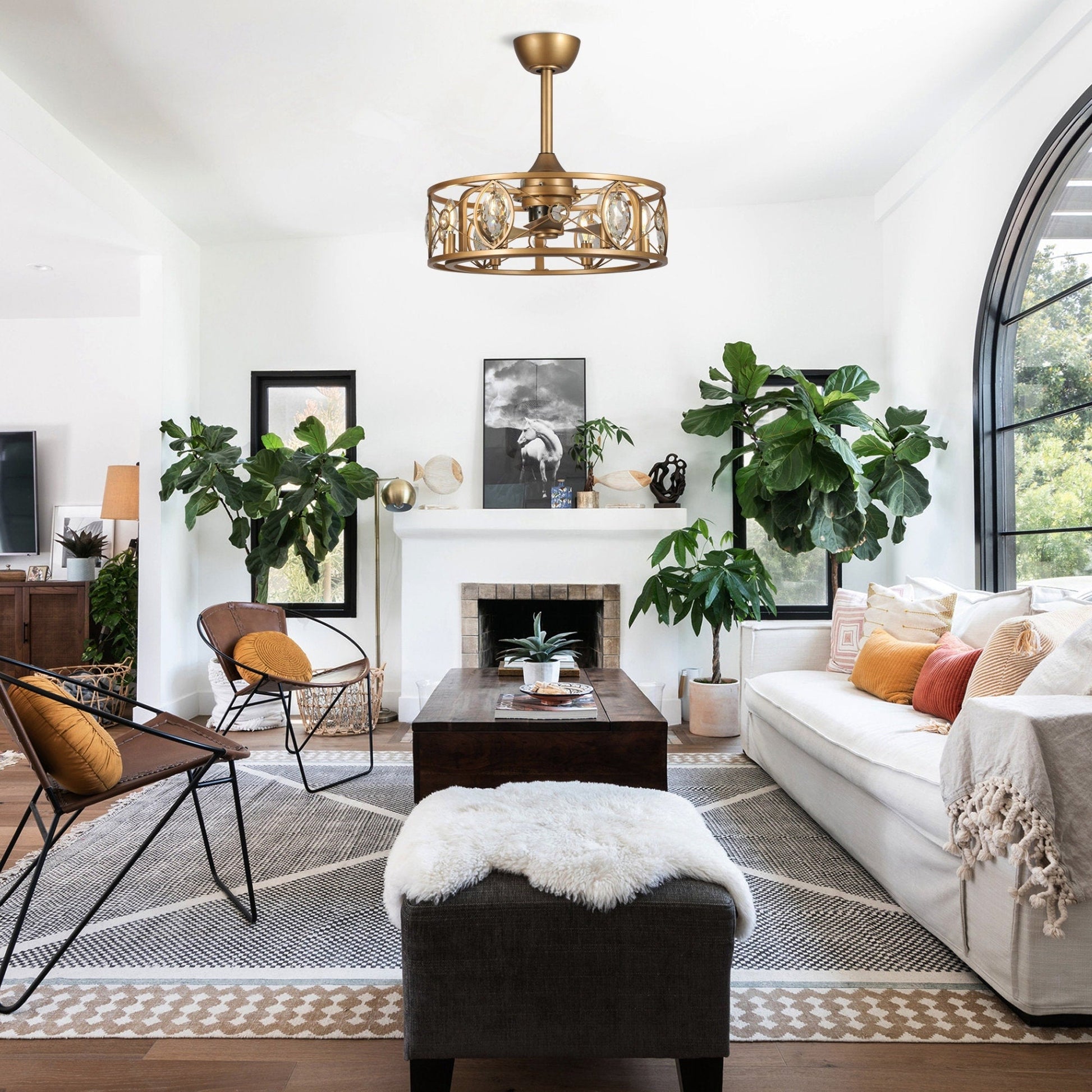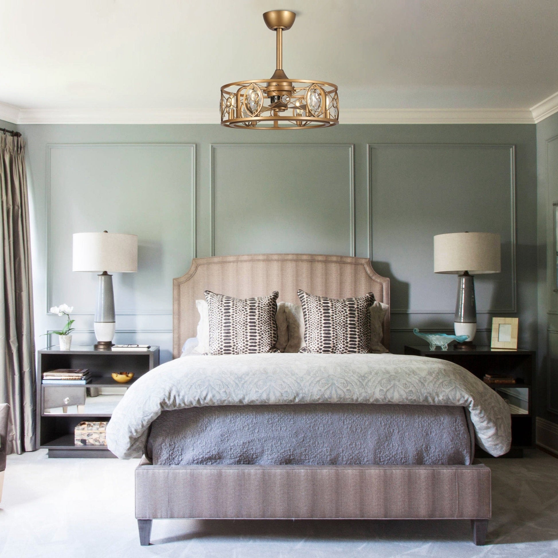 22 Modern Crystal Caged Ceiling Fan...
