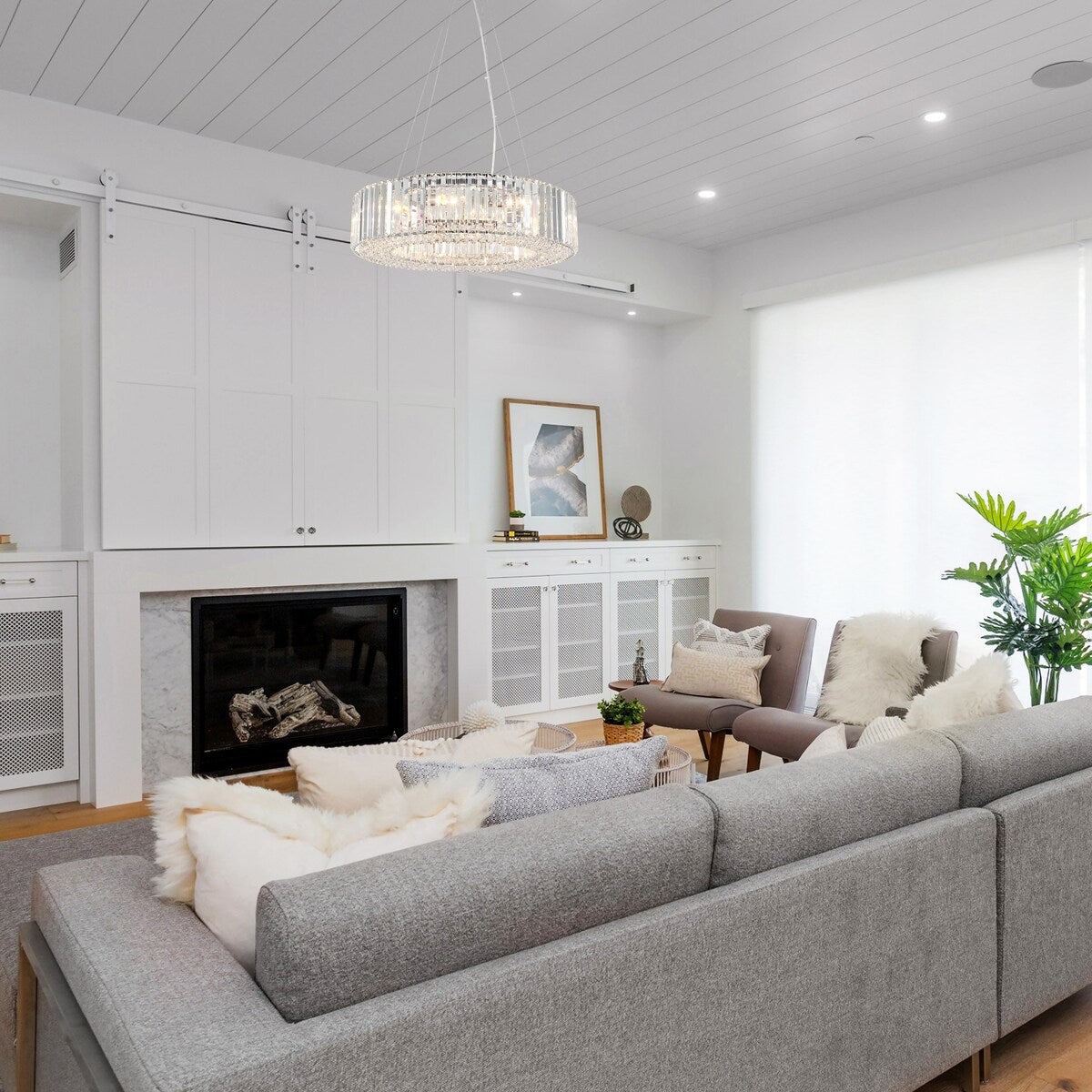• Elegant Design: Featuring a drum shape crafted from iron and crystal materials, this chandelier exudes elegance and sophistication, adding a touch of luxury to any space
