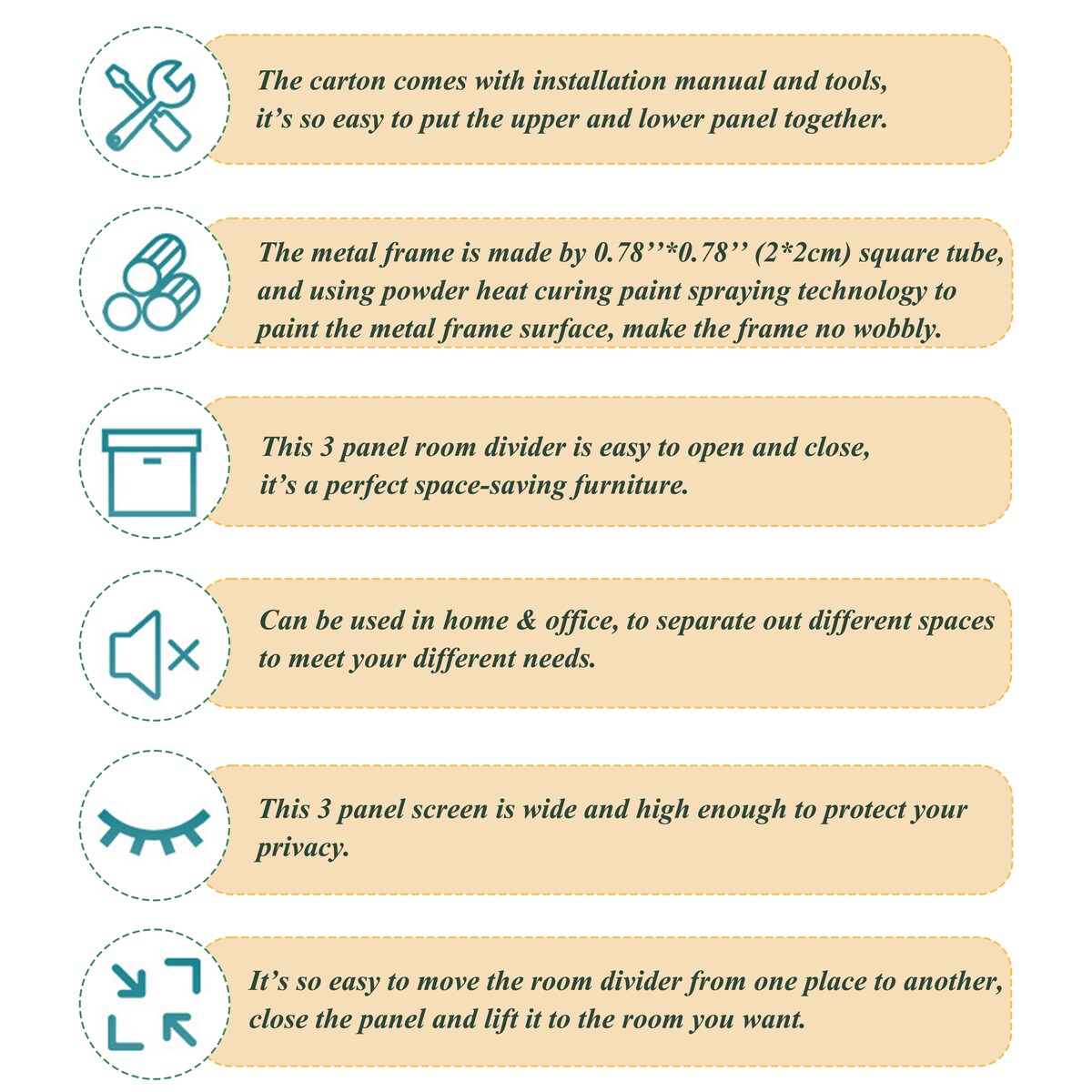 • This room divider is designed to be free-standing and does not require leaning on a wall.