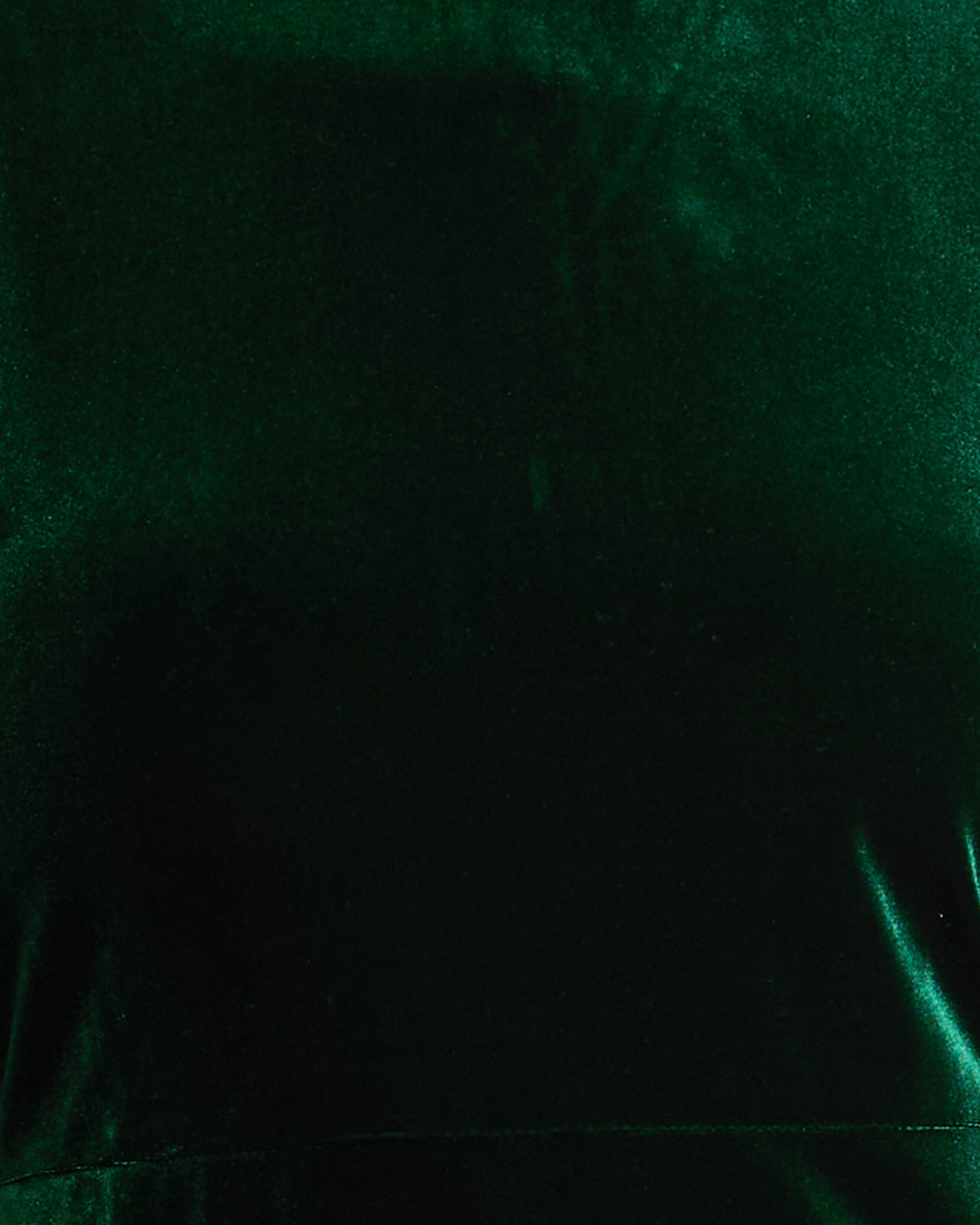This mini dress features ruffle details, 3/4 sleeves, and a high neckline for a charming and elegant look. Made with rich green velvet, it's the perfect party dress.