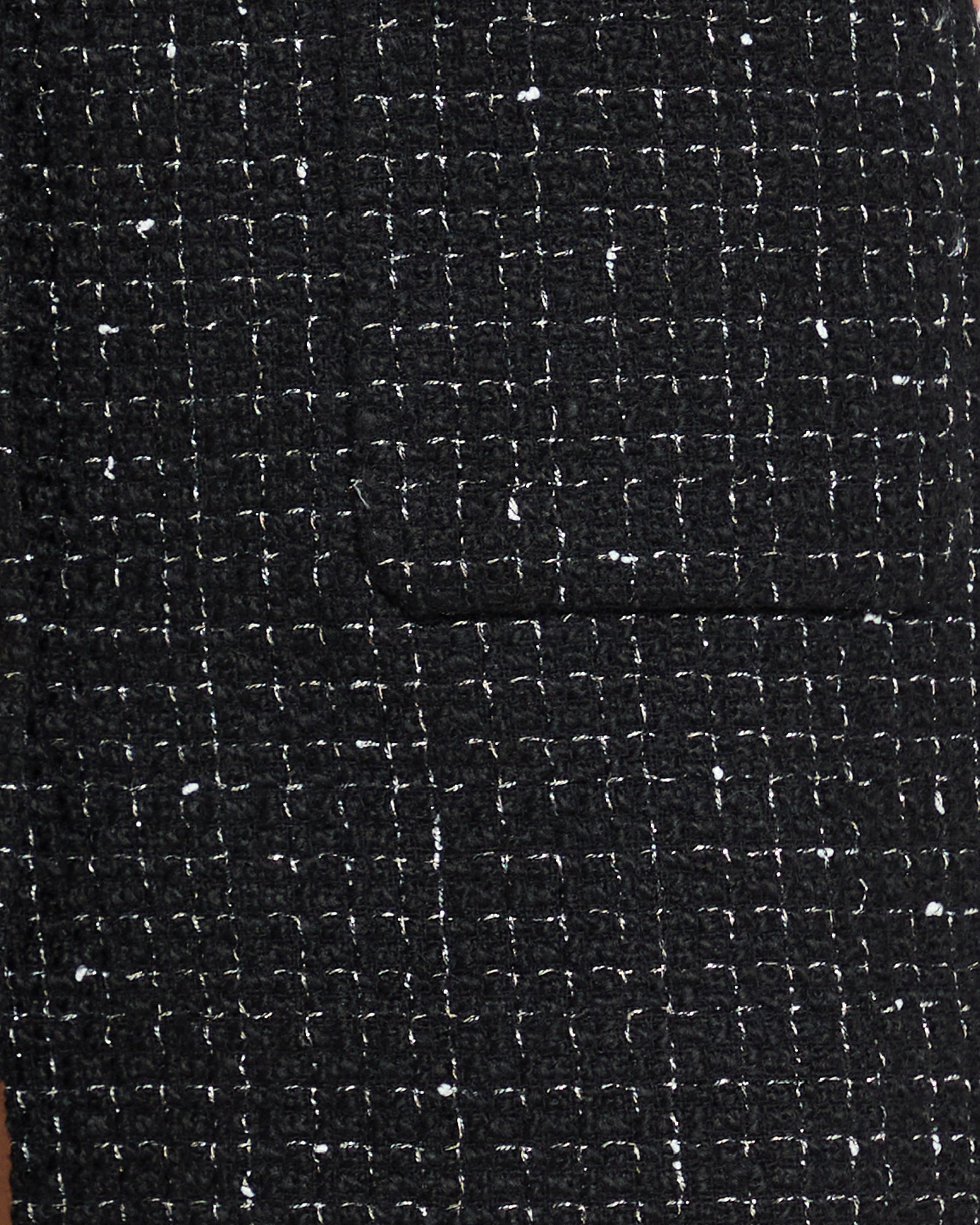 Elevate your style with the Renni Mini Skirt. Crafted from luxurious tweed material, this high-waisted skirt features front gold button details for a chic touch.